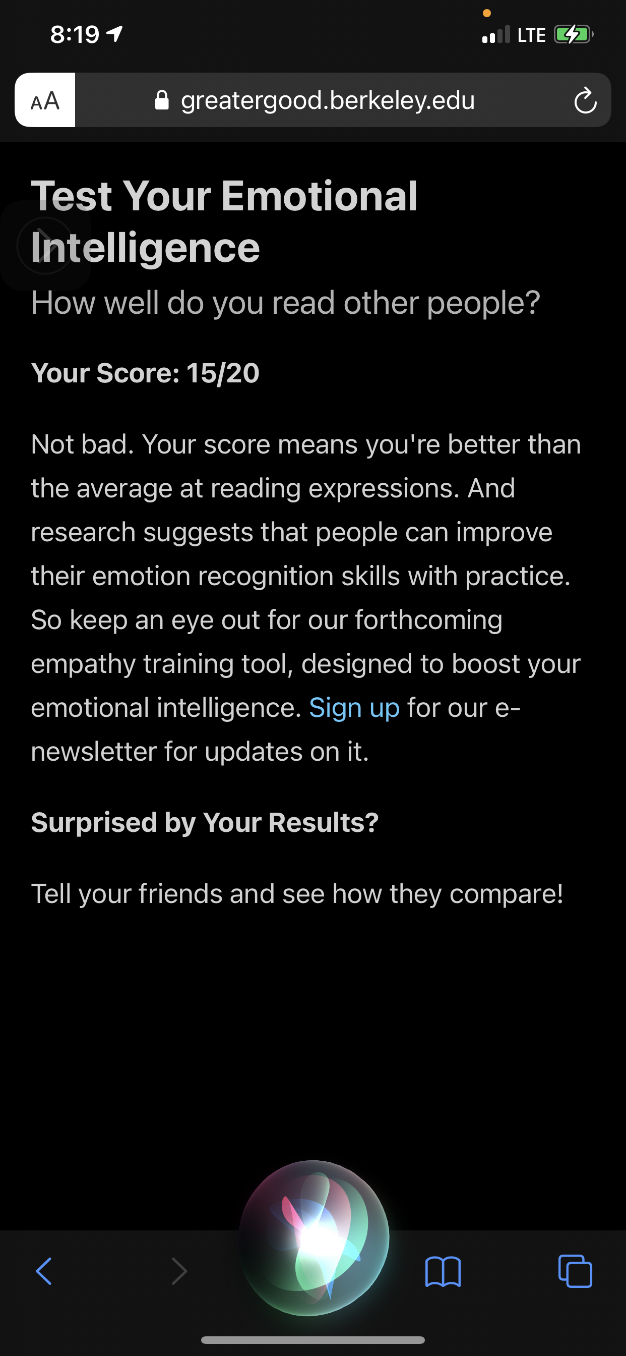 You need to work on differentiating other people’s energy from yours. Learning how to run your energy will help. You scored fairly poor on the “Mirroring Others Unconsciously” portion of the quiz. It looks like you have a tendency to mirror other people and their energy. Your score indicates that you would benefit from learning to recognize your own energy and learning to run it through your body, rather than running your friend’s or family’s energy.